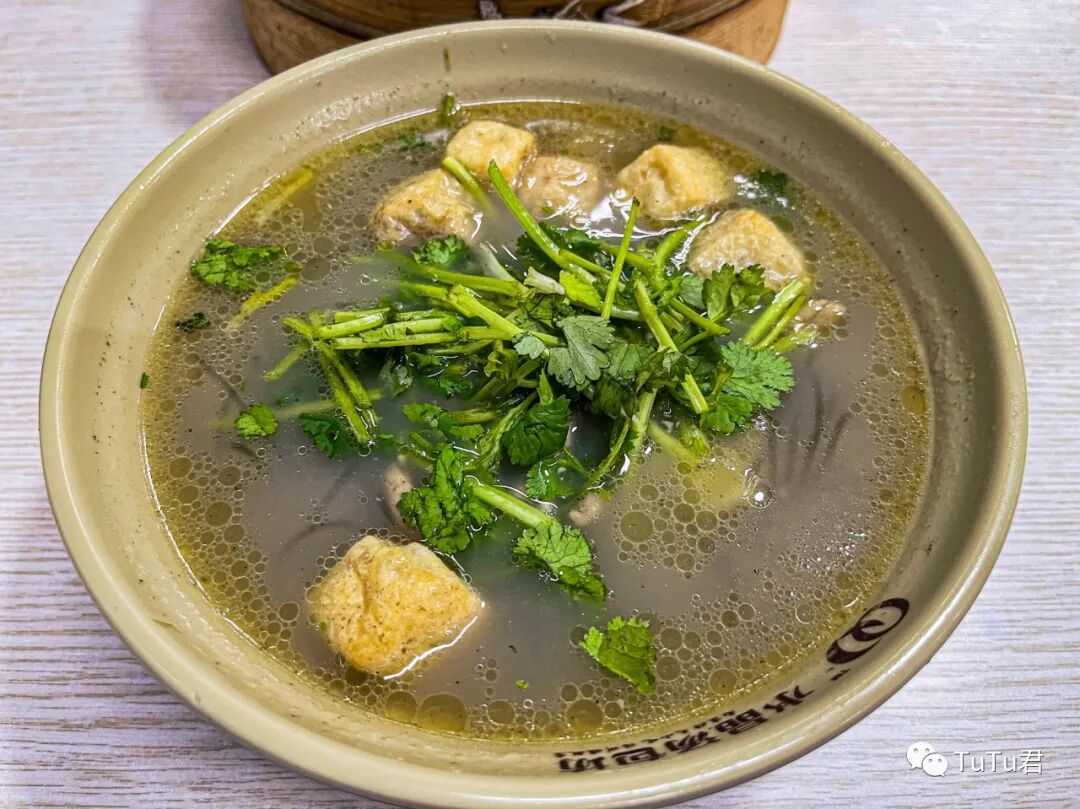 【鸭血粉丝】说是南京鸭血粉丝,不过我只在南京吃过一次,所以也不好说正不正宗(据说正宗的汤头应该是呈乳白色的)。里面有香菜、豆腐泡、鸭血、鸭肠、鸭杂,单单从口味上来说,腥味是没怎么吃出来,汤头味道尚可,用来配汤包是很不错的选择。(16元一份,整体来说中规中矩,并没有网上评论说得特别好吃,可能期待值过高了~)