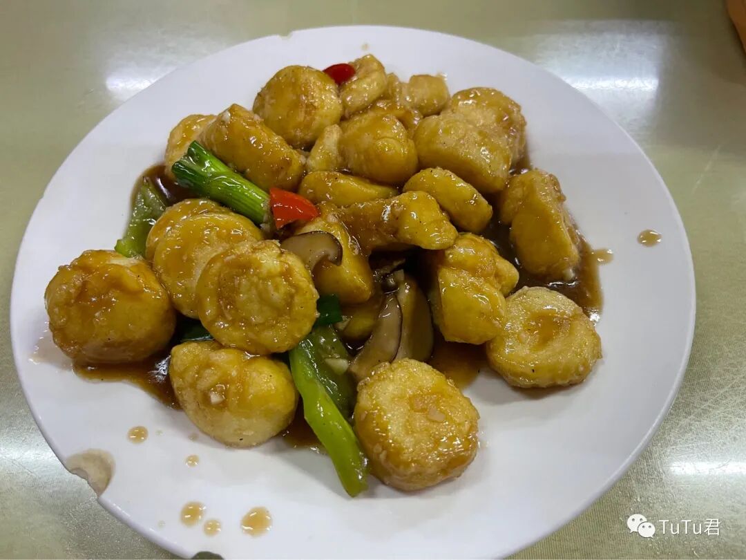 【红烧日本豆腐】很常见的一道家常菜了,表皮炸得恰到好处,微微一点脆皮,一口下去非常嫩,红烧酱汁咸香入味,也很适合配饭(18元一份,超便宜了,没什么缺点的一道菜,不知道点什么就闭眼点它就好了)