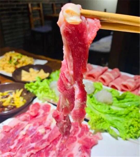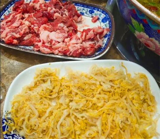 手切羊肉刀工奔放,越涮越嫩,肉味足,手切肉和酸菜铜锅有多配,不用说都知道!
