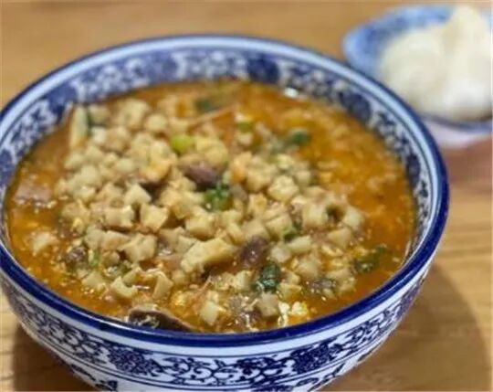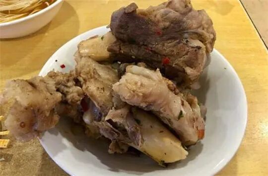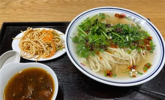 面汤是骨头汤,开了这么多年的店这碗老汤是熬到数了。面劲道量也大,配上香菜葱花点上陈醋拌上辣椒油,扒点蒜,那吃的一气呵成的爽。