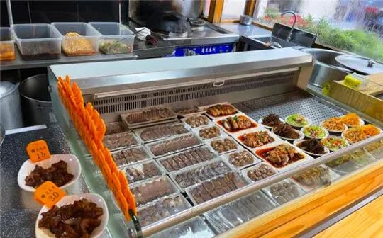 店面看起来古香古色,自助式取餐方式好时髦,小菜自选,面的粗细自选,浇头自选,饮料自选,调味料自选……还有托盘滑道,省时省力。