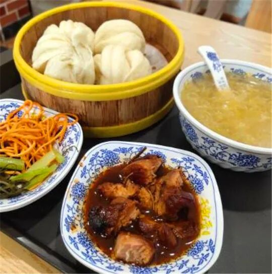 一口汤,一口肉,一勺花卷。蒸好的花卷冒着热气,松松软软,让人特别想咬上一口,很舒服~