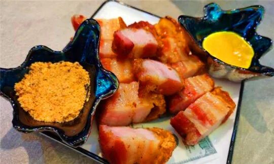 脆皮五花肉、肥瘦相间五花三层的,肥肉的部分有润润的,外皮太酥脆,一口下去太上头。脆皮大肠,都是咯吱咯吱,酥脆肉嫩的。