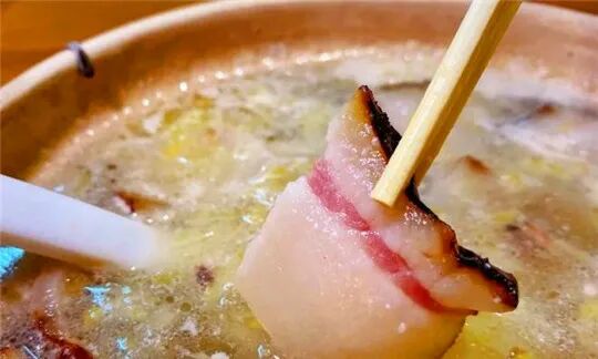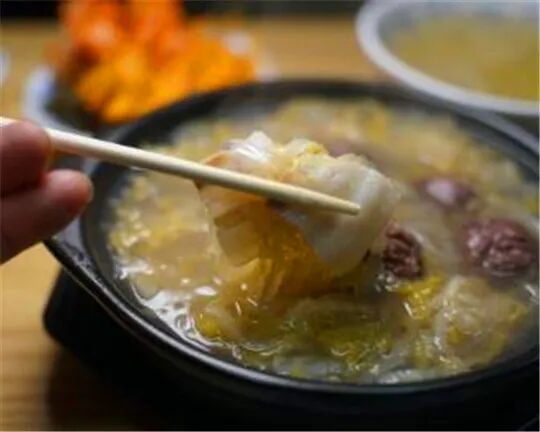 烟熏五花肉酸菜汤,全靠酸菜和五花肉熬煮出鲜味。酸菜吃起来口感脆爽,又刚刚好吸收五花肉的肉香,甚是开胃。