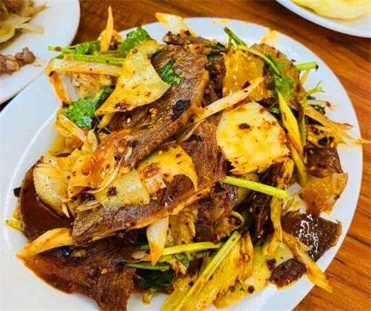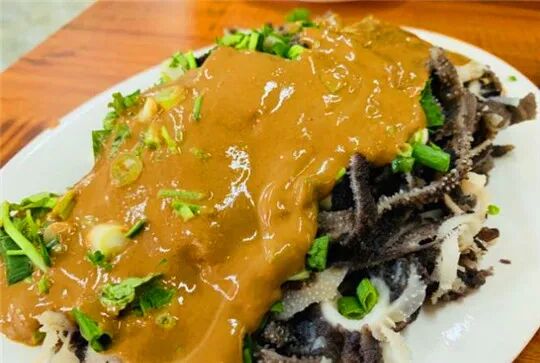 弹牙的水爆肚,配上浓稠的鲜香的芝麻酱,Q弹有嚼劲。扒肉条,肉质嫩滑,每一片肉肉都均匀地挂满浓稠的汤汁,超下饭。