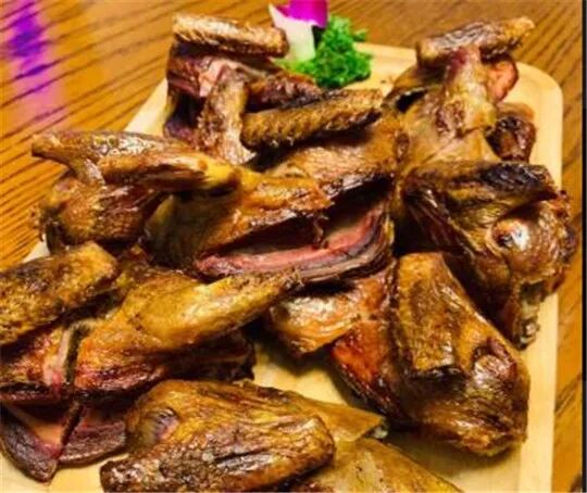最招牌的就是烤鸽子、熏鸽子,真是各有各的滋味。鸽子带皮一起烤,肉色红亮,外焦里嫩,每一丝都很有滋味,越嚼越香,鸽子的皮,口感艮久。