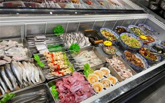 专门的生鲜区域,海鲜、烤串、啤酒,排列得整整齐齐。