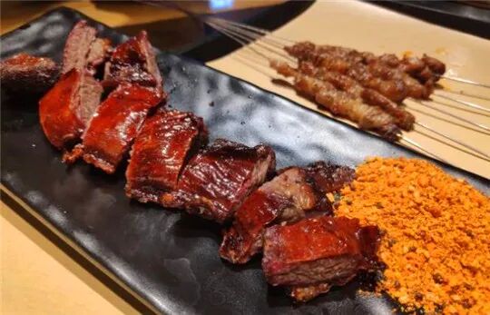 果木爆烤鸽子,表皮焦香酥脆、内里肉嫩多汁,鸽子肉相当的紧实,扯下一丝丝放进嘴里,咸香又有韧劲,越嚼越香。