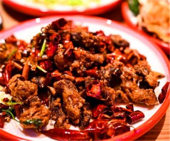 辣炒鸽杂,过油炸得酥脆爆香的,微微辣!香到连皮带骨都舍不得扔掉。