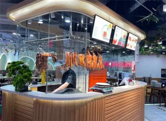 档口店,广东的师傅在做,每天现做,保证新鲜。出炉的烧鸭、烧鹅、叉烧等等整排挂在档口,诱人的色泽~当当当~砍烧鸭的声音,和档口食物飘出的香气,更是撩拨着饥肠辘辘的胃。