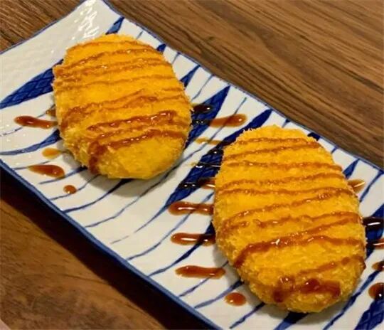 奶酪可乐饼,热乎乎的可乐端上来,咬开金黄的表皮,会听到“咔嚓咔嚓”的脆响。