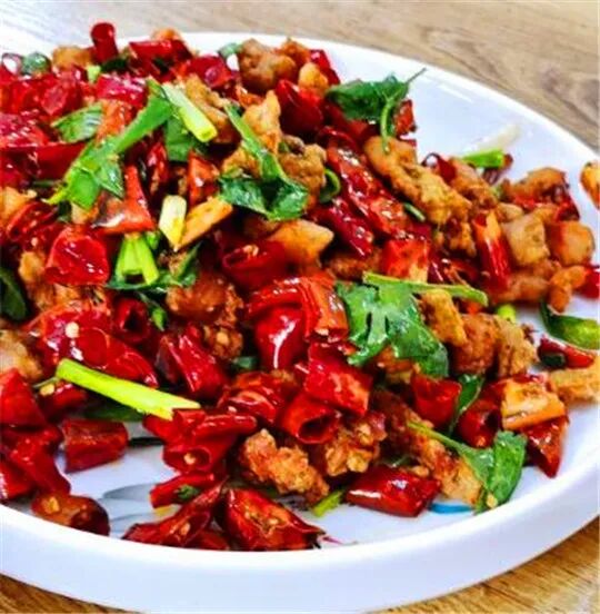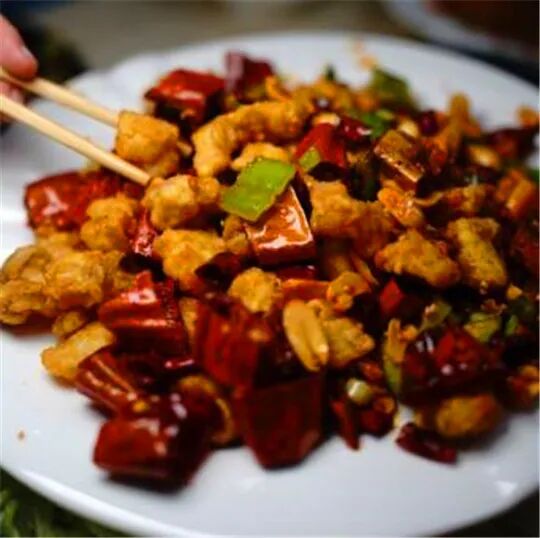 粒粒香椒麻鸡,鸡腿肉切小块,炸得外焦里嫩的,椒香十足又麻又辣的。