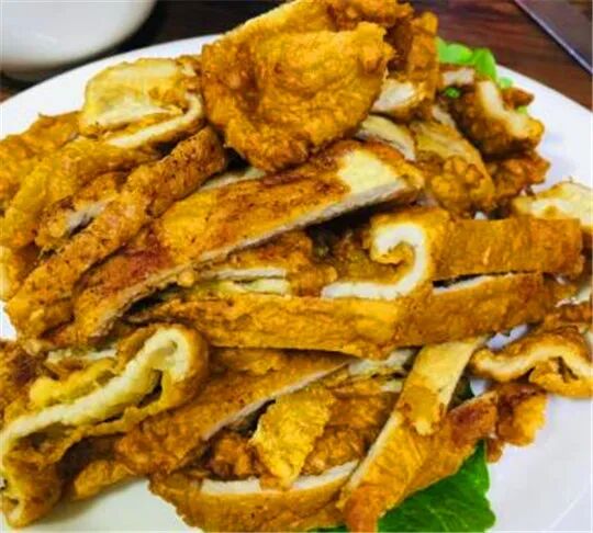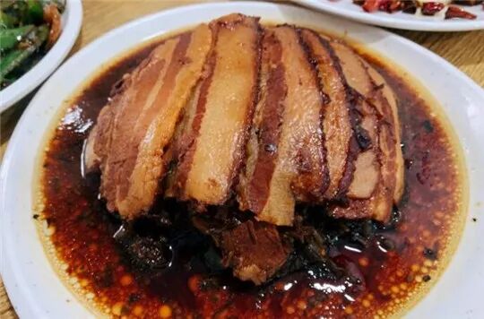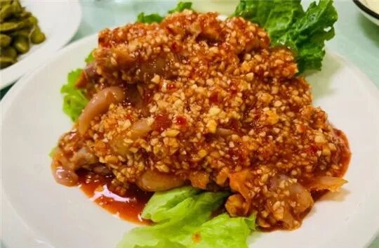 红油肉也是超喜欢的一道菜,感觉是比软炸肉还好吃,红油里放的糖、蒜、陈醋、汤等,肉切成了两半,里面的肉清晰可见。蘸上红油,香甜。