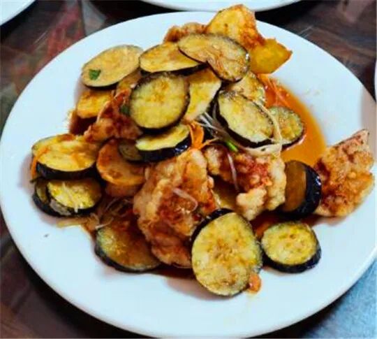 锅包三样,茄子土豆和肉肉,搭在一起口感多样口味却专一,一上桌一股熟悉的酸飘进鼻子。
