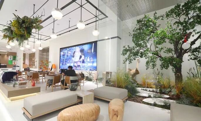 隐身在售楼处里的咖啡店,现代简约,纯白系空间十足,各种摆件摩登文艺、各种的高级感,最点睛一个区域,绿色植物组合的森系花园。你可以各种拍拍拍~