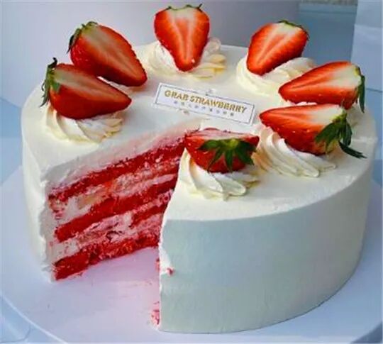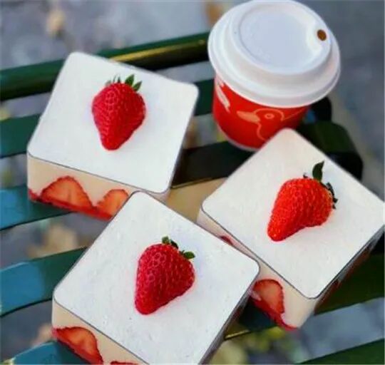 小小的草莓盒子用四四方方草莓蛋糕非常的精致,颜值非常高,路过绝对吸睛。奶油白如雪,草莓剖来切面,下面垫一层红丝绒蛋糕,挖起一块送入嘴中,绵密的蛋糕配着软软的奶油,内含有草莓果肉,香甜入口顺滑。
