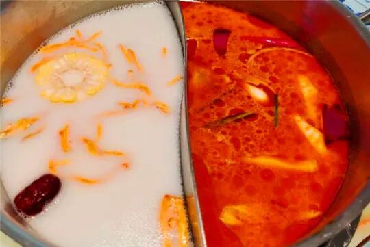 到店必点的冬阴功和椰奶双拼锅底,冬阴功汤里集合了酸辣甜咸各种味道,入口后酸酸辣辣的,浓厚鲜美的味道让人胃口大开。椰香浓郁的椰奶锅,汤头清爽不甜腻,开锅后先喝一碗汤,淡淡的椰香味。一半奶白一半金黄。