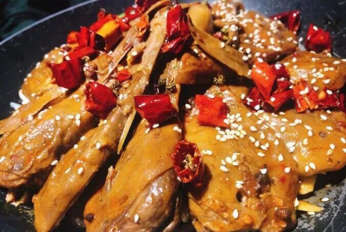 黑椒烧鸭也是店里的金字招牌,油润的皮子烧得通透枣红,鸭肉非常细嫩,一口咬下去丰沛的汁水便在齿间爆开,很容易尝到黑胡椒独有的风味。