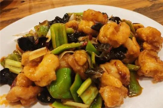 鱼香虾仁,虾仁很大颗,挂着酸甜口的鱼香汁,吃起来Q弹紧实。