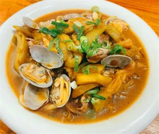 茄子炖蚬子,招牌必点,茄子是去皮的,茄子炖的软烂,蚬子给的也不少。