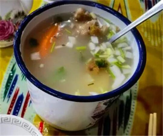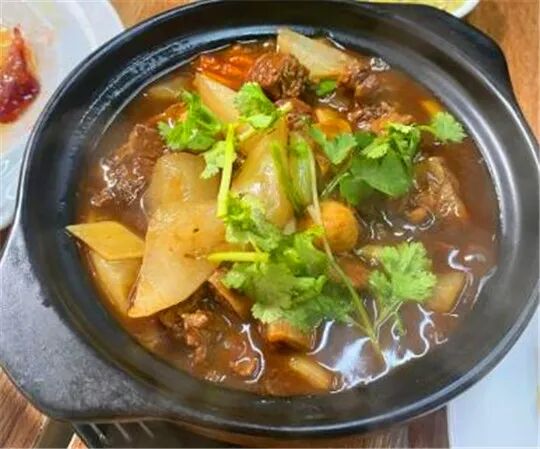 茶缸焖肉,满满都是羊肉汤的清香。里面的料相当丰富,羊肉、萝卜、红枣、勾起···起锅的时候里面放香菜、小葱。