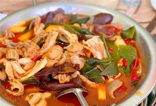 各种吃的品种也不少。避风塘炒虾,生啫鱼头煲、萝卜牛肉煲、啫啫大肠、花胶鸡,这样特色鲜明的广式私房菜。