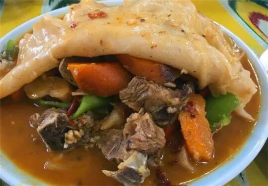 这里的羊肉焖饼也是特色,揭开饼后里面藏着诱人的红烧羊排,吃起来香嫩,或者直接上手啃一块羊排,别看外观不是那么漂亮,但味道相当可~
