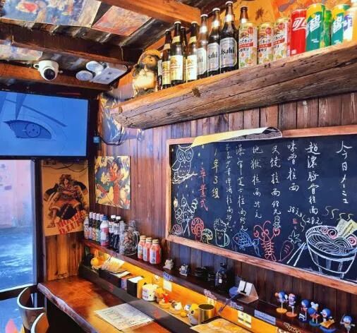 各种的日式串烧和日式拉面。招牌的芝士鸡皮虾,一红一绿的培根圣女果串、培根青提串,鸡腿葱肉、菠萝牛舌、吃着小串喝着小酒······