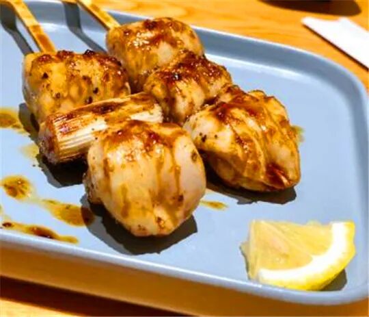 鸡肉葱串,可是烧鸟中的经典,也是很多吃货的最爱!鸡腿肉的嫩滑多汁,配上大葱独特的香味,只一串便足够圈粉。