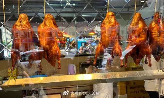 开了好多年的烤鸭店,到了周末更是一“鸭”难求啊。刚出炉的鸭子吊挂起来,表皮油亮而红润,多余的油汁又顺着表皮滴落下来。
