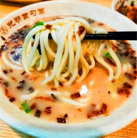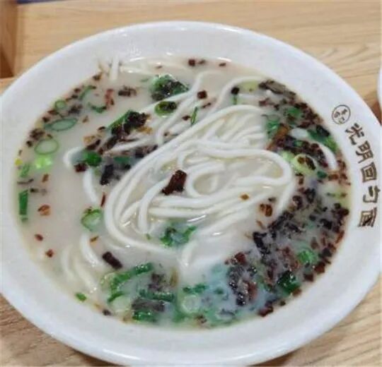 老店就不要太挑环境啦,回勺面,汤和面分开上,焦葱配上剔骨肉,汤汁纯白醇厚,面条很爽滑。剔骨肉,筋跟瘦肉居多,炸好的葱花特别的酥脆,再淋点醋和辣椒,拌匀,一口下去,唇齿留香。