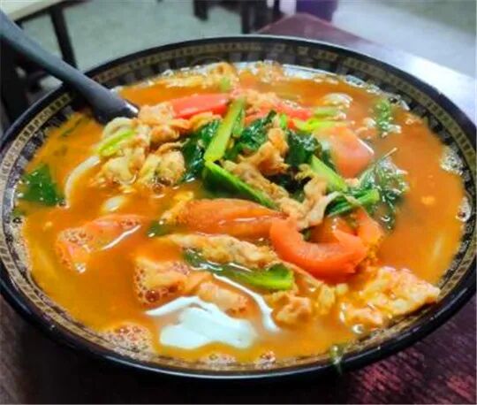 臊子面真是跟人家不一样,里面配料有肉丁、芸豆丁、土豆丁、西红柿丁···汤特别受,就是稍稍有点辣,感觉啥啥的都好吃。店在居民小区里,环境有点凌乱。