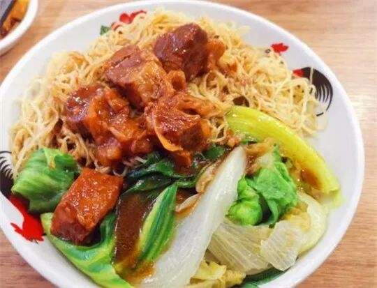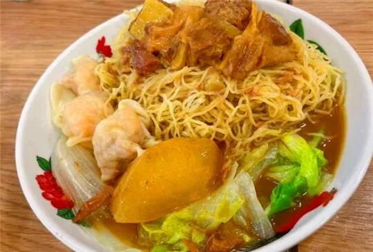 招牌牛腩云吞汤面,面格外的爽口弹牙,同时散发着蛋香的味道,港式风味的秘制牛腩烟韧有口感,软嫩又开胃。