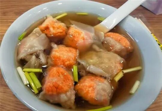 鲜虾云吞面,云吞虾肉紧实,每个云吞里都有一只虾,竹升面脆弹,云吞口感滑爽,虾味上汤鲜美不油腻。