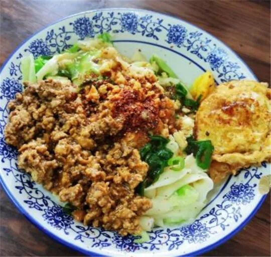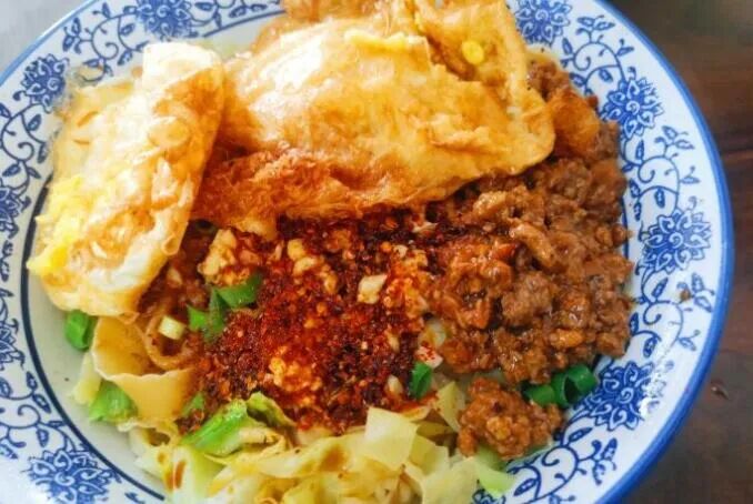 面积不大,正经小粑粑馆。人气很旺的,老板是陕西人。煎蛋肉酱蔬菜油泼面是这家点得最多的一款面。
