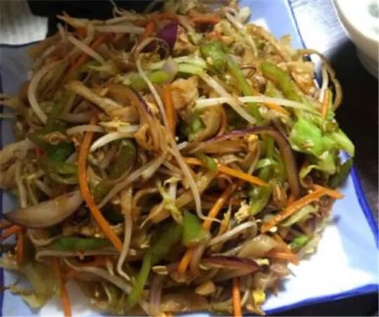 鸡蛋炒饼,也是山西特色食物,把烙饼切成丝,跟白菜鸡蛋炒成一大盘。饼丝口感稍硬韧,很有嚼劲,本身就有烙饼的香气,再经过油炒后,每根饼丝外层都有油酥的口感。
