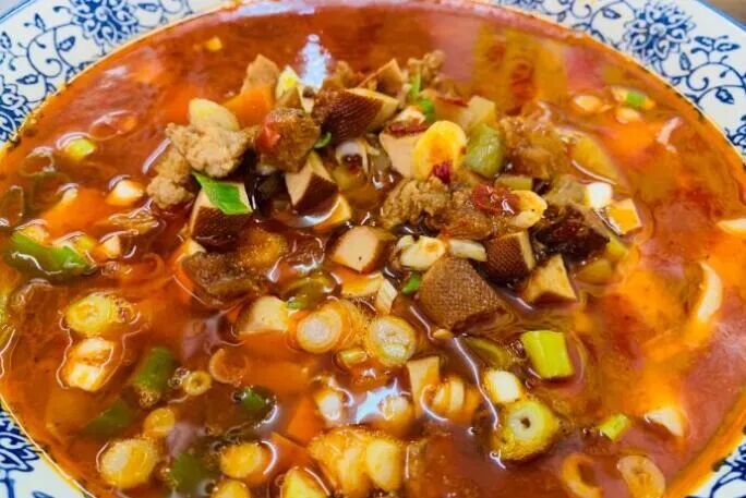 是先炝锅炒面码,然后烹汤,加入煮成八分熟的成面,加热至面条入味,汤、面各半,调好口味,装碗即可,面条经过回勺仍旧保持筋道。