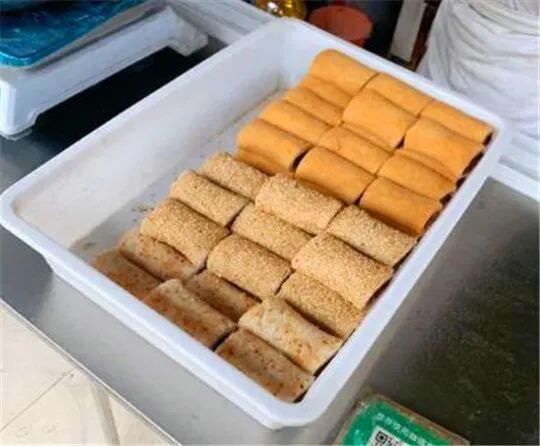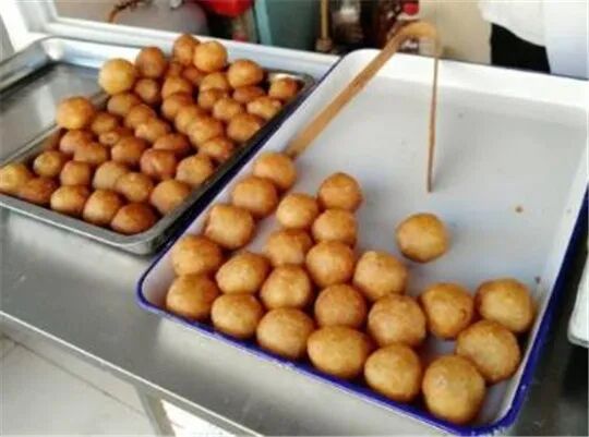 只是现在做炸元宵,炸元宵是有什锦和黑芝麻两种馅,酥软甜糯的,馅料饱满。