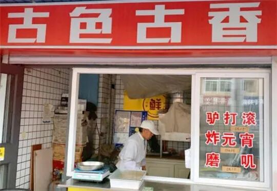 是夫妻俩开的小店,以前在糯米香工作的老师傅。窗上标注的品种炸元宵、驴打滚、磨叽。想要去买的时间得趁早,都不用到中午就卖光了。
