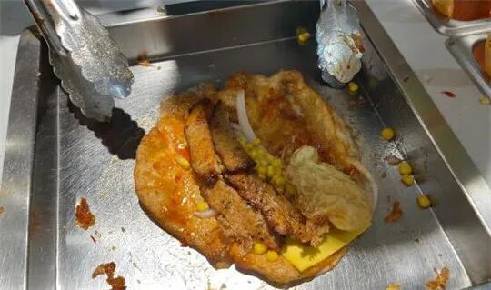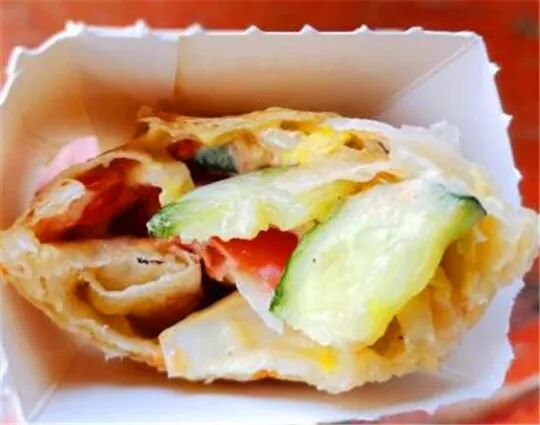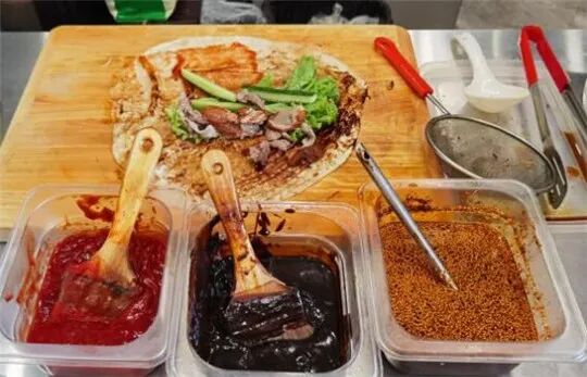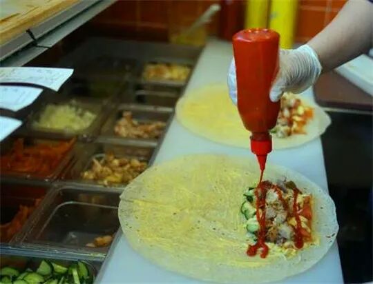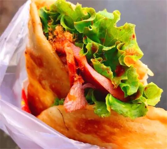 夹里脊肉、夹火腿片、夹生菜、夹鸡蛋、夹肉松、夹土豆丝等等…卷起来时甚至可以清晰地听到饼皮咯吱咯吱的酥脆声!