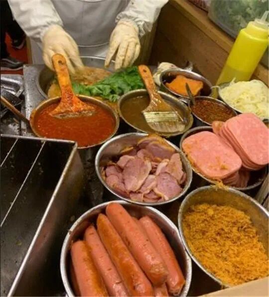 也是好久没吃的一家做台湾花莲的小吃,炸蛋葱饼,混搭超多口味,加玉米粒、芝士片、猪扒等等。