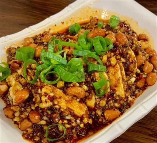 一份红油满满的口水鸡,口感层次丰富,味道醇厚。