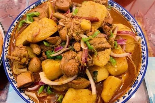以新疆菜为主的馆子,新疆大盘鸡,馕包肉,干锅羊排,明德炖菜都是可圈可点,大盘鸡里一定要加一份裤带面啊,色彩鲜艳,有爽滑麻辣的鸡肉和软糯甜润的土豆,辣中有香,粗中带细。