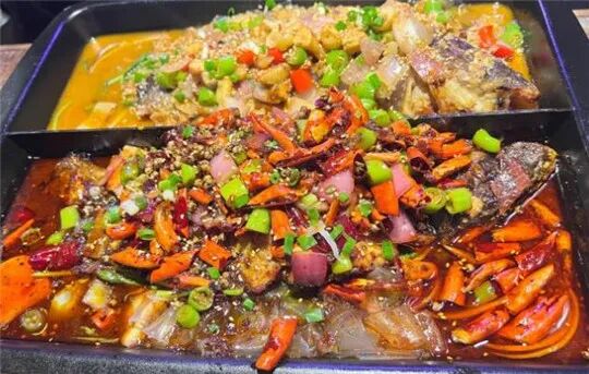 重庆万州烤鱼,他家有香辣味、泡椒味、麻椒味、蒜香味、鲜花椒味……多种口味可以选择。