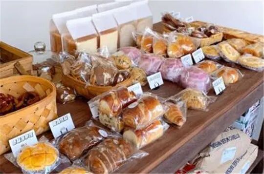 觅到这一小店,店面不是很大,但有一个加工车间,提供外定。店内看见的品种都不是很多,几款碱水包+几款网红款面包和甜点。