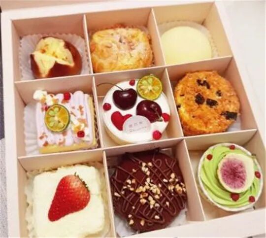 你们还可以订一款九宫格的甜点,一次性可以吃到九种口味的甜点,颜值也好味道也不错。