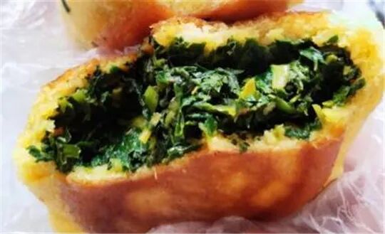 有蒸的有烙的。特色就是皮薄馅大,一包菜。