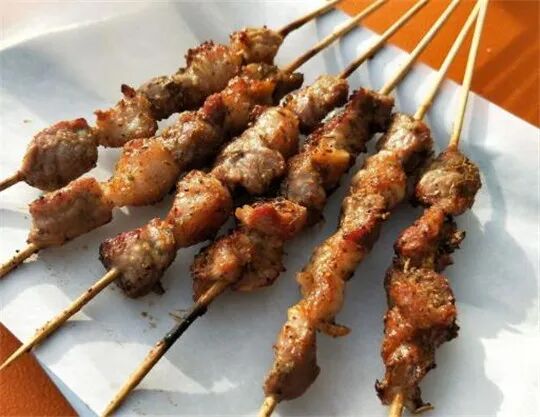 还有一款馕肉饼,就是羊肉饼,里面羊肉的味道不错。馕和烤串还有个组合,一个馕5个串,越吃越有的感觉。就是馕着实有点费牙。他家只有羊肉大串,人气很旺。