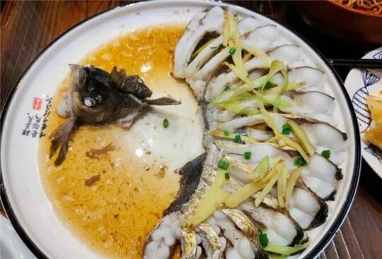 主打的清蒸武昌鱼很值得一尝,鱼身切成扇形状,一是方便入味,二是造型美观,三是成熟快。肉质肥美细腻,汤汁鲜浓清香,用鱼肉蘸着汤汁吃,爽滑,就是需要小心鱼刺。