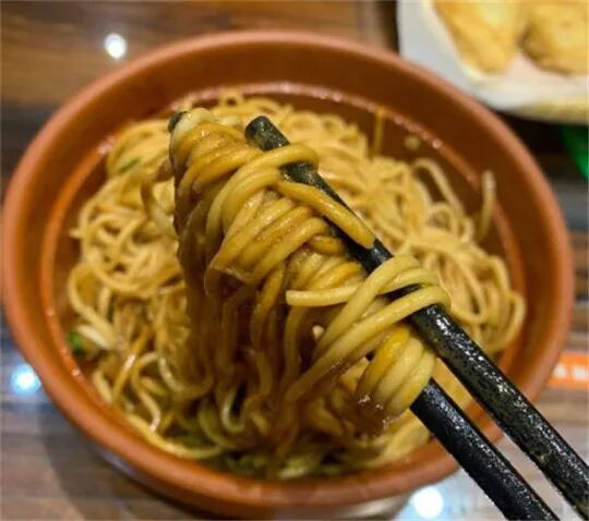 热干面,碱水面,拌上酱汁,浓浓的麻酱香,面条劲道有嚼劲。